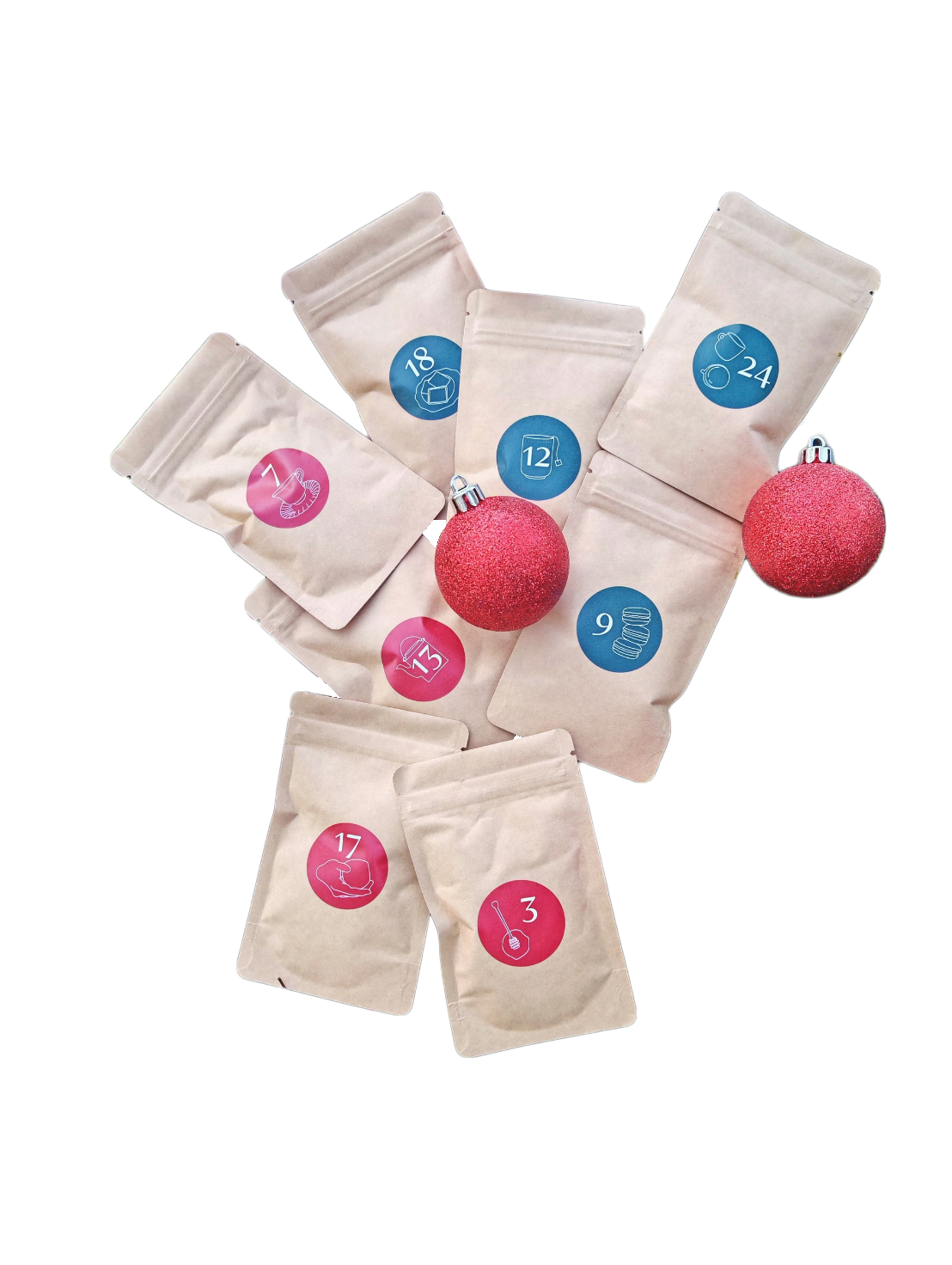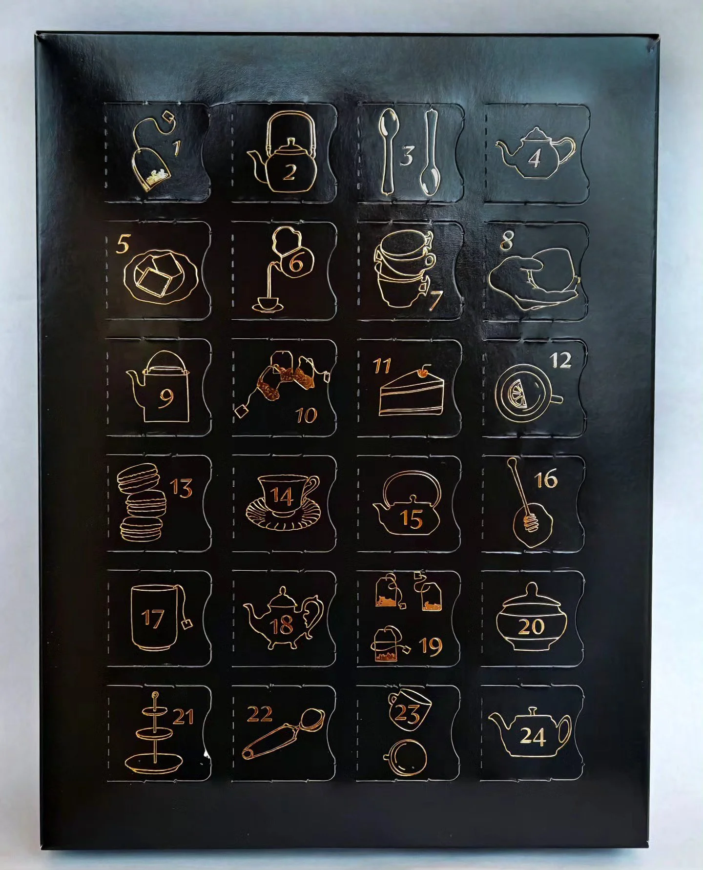 There are two versions of the calendar. One that contains chocolate, and another that contains tea leaves.